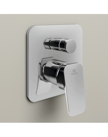 Ideal Standard Ceraplan potinkinis dušo / vonios maišytuvas su potinkine dalimi komplekte. Geometrinių formų, estetiško dizaino maišytuvas turi patogią metalinę rankenėlę, kuria lengvai reguliuosite vandens srovę ir temperatūrą net ir muiluotomis rankomis. Integruotas automatinis diverteris, perjungiantis vandens srovės kryptį.