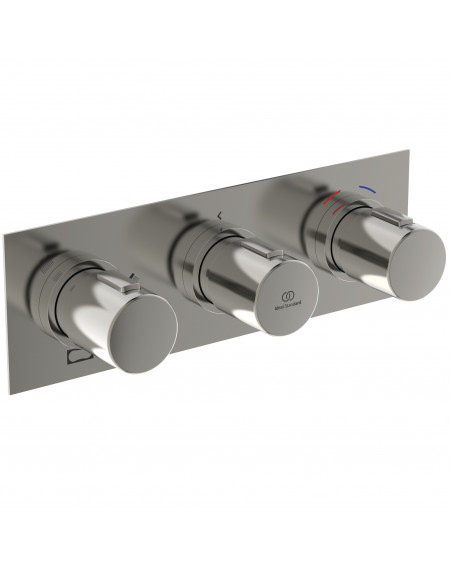 Ideal Standard Ceratherm C100 - aukštos kokybės, išskirtinio dizaino potinkinis termostatinis maišytuvas dušui bei voniai (turi tris išbėgimo kryptis). Stačiakampio formos maišytuvas išsiskiria savo spalvų pasirinkimu, modernumu bei vandens srovių valdymu, pavyzdžiui: rankiniam dušeliui, dušo galvai bei vonios snapui.