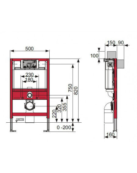 Tece potinkinis wc rėmas su tvirtinimo elementais (žemas) 820x500x160mm