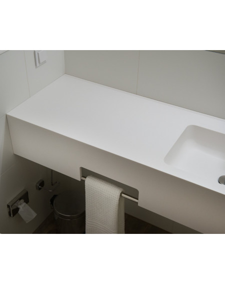 - Montuoti stalviršius su integruotais praustuvais ant sienos su šoninėmis uždangomis viešbučių ar apartamentų vonios kambariuose