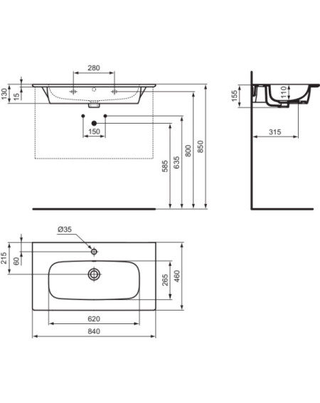 Ideal Standard i.Life A praustuvas, 84cm. i.Life A - tai moderni ir optimali vonios kambario kolekcija, vertinantiems paprastumą, gaminio garantinį ir pogarantinį aptarnavimus bei norintiems švaraus, estetiško dizaino namuose. Praustuvas skirtas montuoti ant baldinės i.Life 80cm spintelės arba atskirai su sifonu. Praustuvas turi persipildymo skylę, centre yra paruošta skylė maišytuvui.