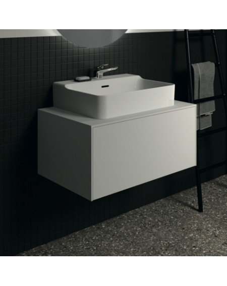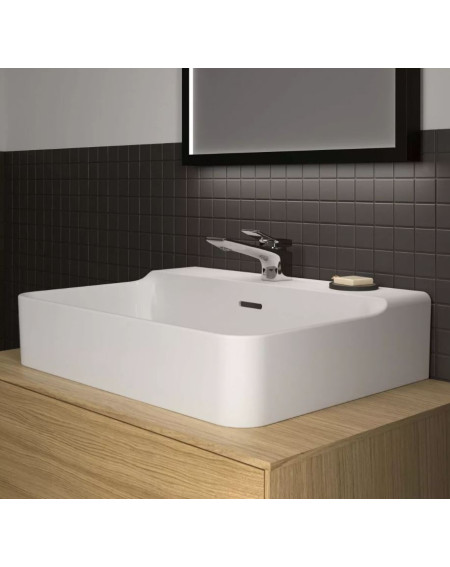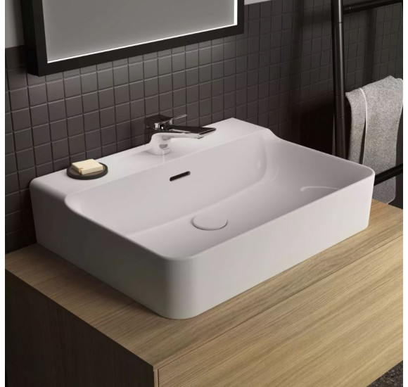 Ideal Standard Conca praustuvas. Šlifuota praustuvo apačia itin lygaus paviršiaus, todėl tinkama montuoti ant stalviršio, vonios spintelių. Taip pat praustuvas gali būti pakabinamas ant sienos ar pastatomas ant pjedestalo. Praustuvas su persipylimo skyle, o virš jo centre paruošta skylė maišytuvui.