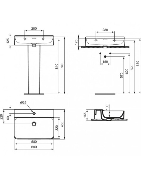 Ideal Standard Conca praustuvas 60cm, pastatomas/pakabinamas
