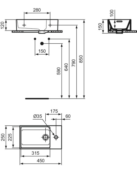 Ideal Standard Extra kolekcijos praustuvas, skirtas montuoti ant stalviršio. Puikus pasirinkimas į mažą vonios kambarį, norint sutaupyti vietos. Šlifuota apačia: tinka montuoti ant stalviršio (užtikrinamas lygumas). Maišytuvo skylė ir persipildymo anga - dešinėje praustuvo pusėje. Sifonas ir maišytuvas įsigyjami atskirai.
