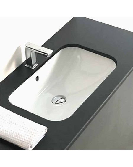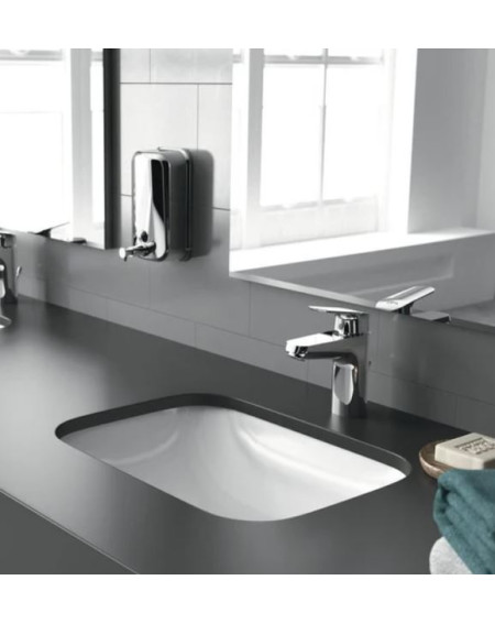 Ideal Standard Connect užapvalinto stačiakampio formos praustuvas, montuojamas po stalviršiu. Praustuvas be skylės maišytuvui, su persipylimo anga. Į komplektą įeina baldų pjovimo šablonas ir tvirtinimo rinkinys. Pagaminta Europoje.