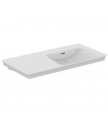 Ideal Standard La Dolce Vita praustuvas 1060x535x145 - tai modernus ir stilingas pasirinkimas, puikiai papildantis vonios kambario interjerą. Jo elegantiškas dizainas ir švelnios asimetrinės formos su lenktomis linijomis suteikia erdvei ne tik estetikos, bet ir išskirtinio žavesio. Galimybė rinktis dubens pusę - kairėje arba dešinėje.