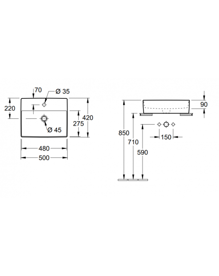 Villeroy & Boch Memento 2.0 pakabinamas praustuvas, 500x420, 4A0750