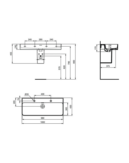 Ideal Standard Strada II praustuvas, 100 cm, baltos blizgios spalvos