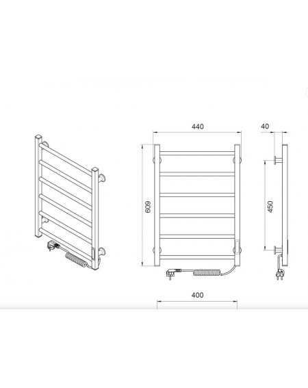 - Galingumas: 95 W. Šildomo paviršiaus temperatūra: min-36°C, vidutinė-45°C, max-55°C. Maitinimo įtampa: 220V, srovės dažnis: 50Hz. IP apsaugos laipsnis: IP44. Medžiaga: konstrukcinis plienas, matiniai juodi milteliniai dažai.