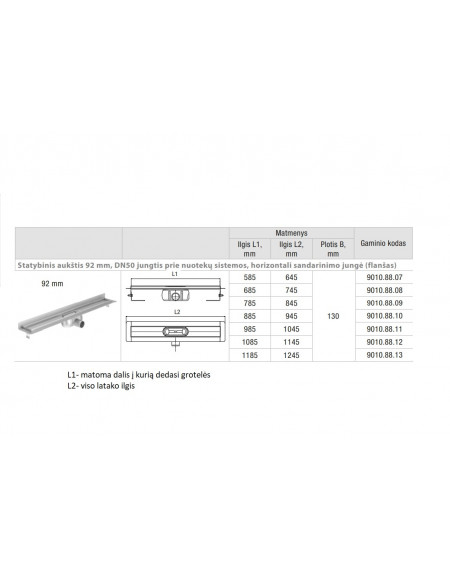 - Sertifikuotas dušo latako pralaidumas pagal EN 1253: 0,91 l/s su 50 mm sifonu;