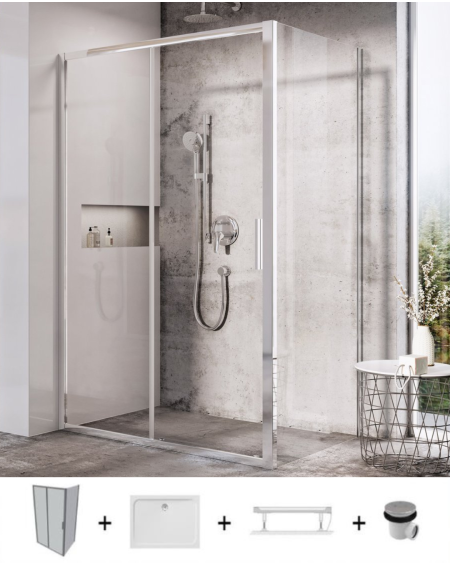 Ravak dušo komplektas Blix Slim 100x80, chromo spalvos profiliai, pasirenkama pusė