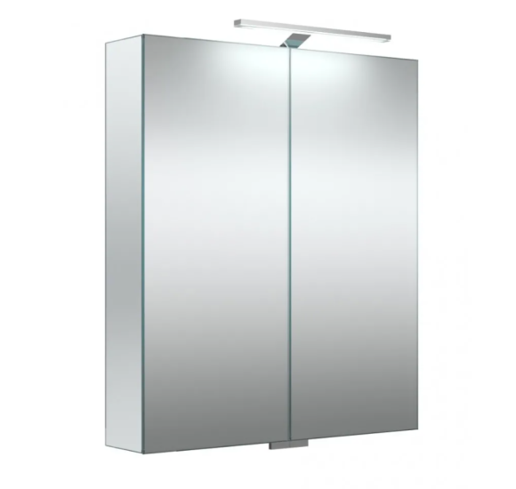 KAMĖ Garda veidrodinė spintelė su LED apšvietimu 60 cm - dviejų durų veidrodinė spintelė su veidrodiniais šonais ir LED šviestuvu. Spintelės viduje rasite patogiai išdėliotas stiklo lentynėles, o taip pat kištukinį lizdą Jūsų elektriniams vonios prietaisams. Veidrodinė GARDA spintelė su LED šviestuvu – tarnaus kaip papildomas vonios kambario ir funkcionalus šviesos šaltinis prie kriauklės.