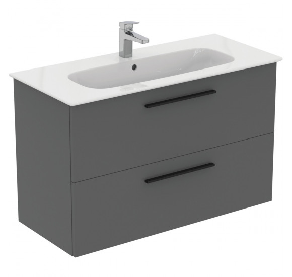 Kokybiška ir moderni vonios spintelė su keraminiu praustuvu ir dvejomis rankenėlėmis (juodos spalvos). "Smart premium" segmento spintelė - kokybiškos medžiagos, estetiškas dizainas su kruopščiai gamintojo atrinktomis spalvų paletėmis.Pagrindiniai privalumai:
