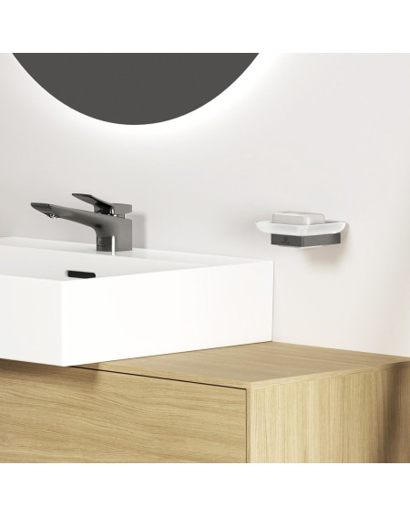 Ideal Standard Conca kolekcijos muilo laikiklis. Praktiška ir patogi vonios kambario detalė, kuri pasižymi elegantiška išvaizda bei patvarumu. Laikiklis pagamintas iš metalo, lėkštelė - balto matinio stiklo. Rekomenduojame derinti su kitais Conca kolekcijos vonios kambario aksesuarais ir įranga. Gaminio ypatybės: