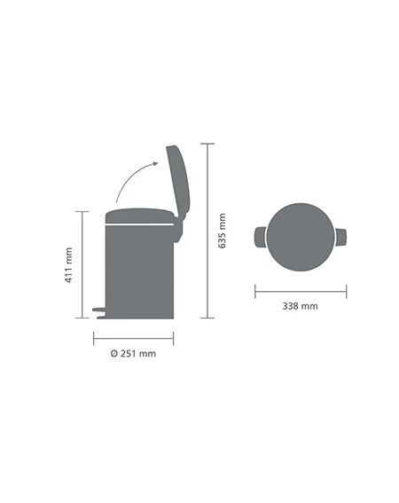 Brabantia juodos matinės spalvos šiukšlių dėžė su pamina, 12 l talpos. Puikus pasirinkimas vonios kambariui, WC erdvei ar darbo kampui. Atidarymas paspaudus pedalą - higieniškas ir sterilus, be jokio papildomo prisilietimo. Metalinė išorė atrodo solidžiai ir estetiškai, o dangtelis užtikrina nemalonių kvapų sulaikymą ir švarų, tvarkingą vaizdą.