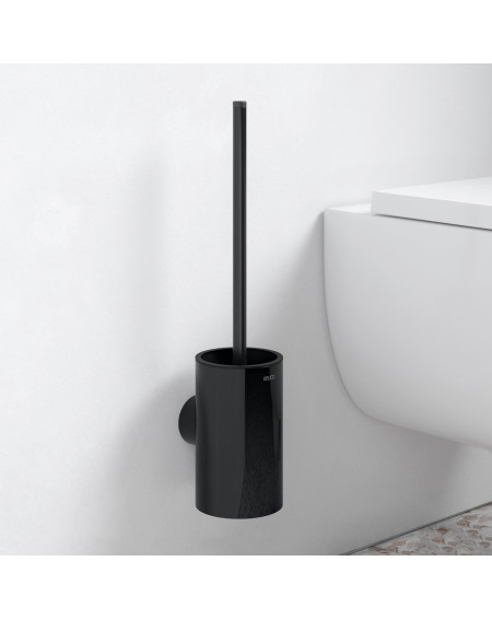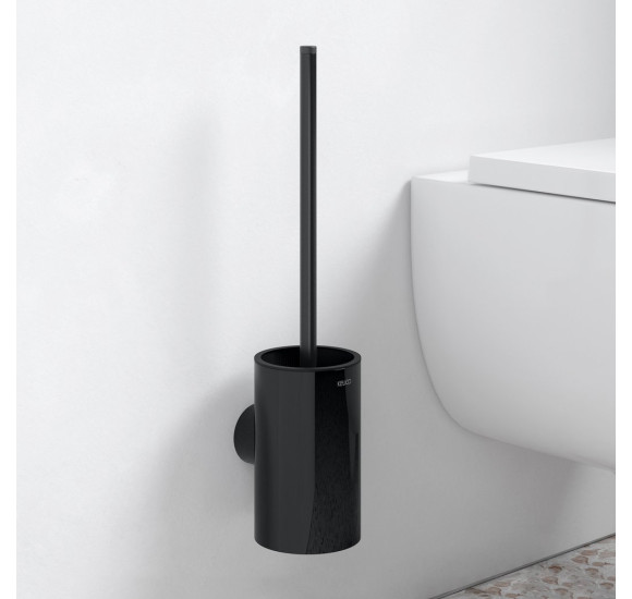 Keuco Reva tualetinio šepečio laikiklis, tvirtinamas prie sienos. Keuco - tai išskirtinės kokybės ir funkcionalumo vonios kambario aksesuarai, pagaminti Vokietijoje. WC šepetys pasižymi satino tekstūros matinio stiklo indu. Viduje yra plastikinis įdėklas, kurį patogu išimti valymui bei keičiama šepečio galvutė. Tvirtinimas prie sienos yra paslėptas, kad dizainas galėtų visiškai atsiskleisti.