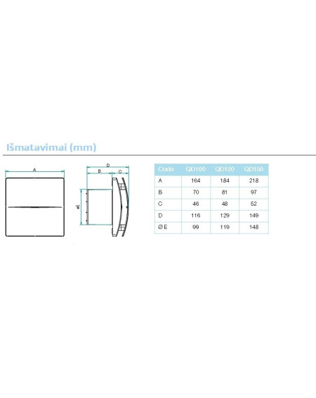 Ištraukimo ventiliatoriaus Aerauliqa QD privalumai:
