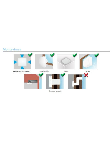- Prietaiso korpusas yra padengtas baltais RAL 9010 dažais ir yra atsparus UV spinduliams;