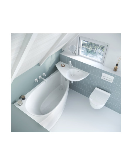 Ravak Avocado asimetriška vonia - tai viena mažiausių vonių iš viso Ravak asortimento. Avocado kolekcija sukurta itin mažiems vonios kambariams, kur nėra vietos įprasto dizaino vonios. Vonia nors užima nedaug vietos, tačiau neatima kasdienio naudojimo komforto. Jos vidus pakankamai patogus ir komfortiškas atpalaiduojančioms maudynėms.