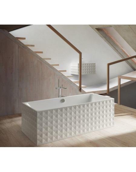 Išskirtinio dizaino, plieninė vonia - BETTE LOFT Onrament su apdaila iš visų keturių pusių.Plieninės vonios - bene patvariausios, ilgaamžiškiausios ir atspariausios įvairiems poveikiams, todėl produktas itin tinkamas turintiems gyvūnų ar mėgstantiems žvakes vonioje.